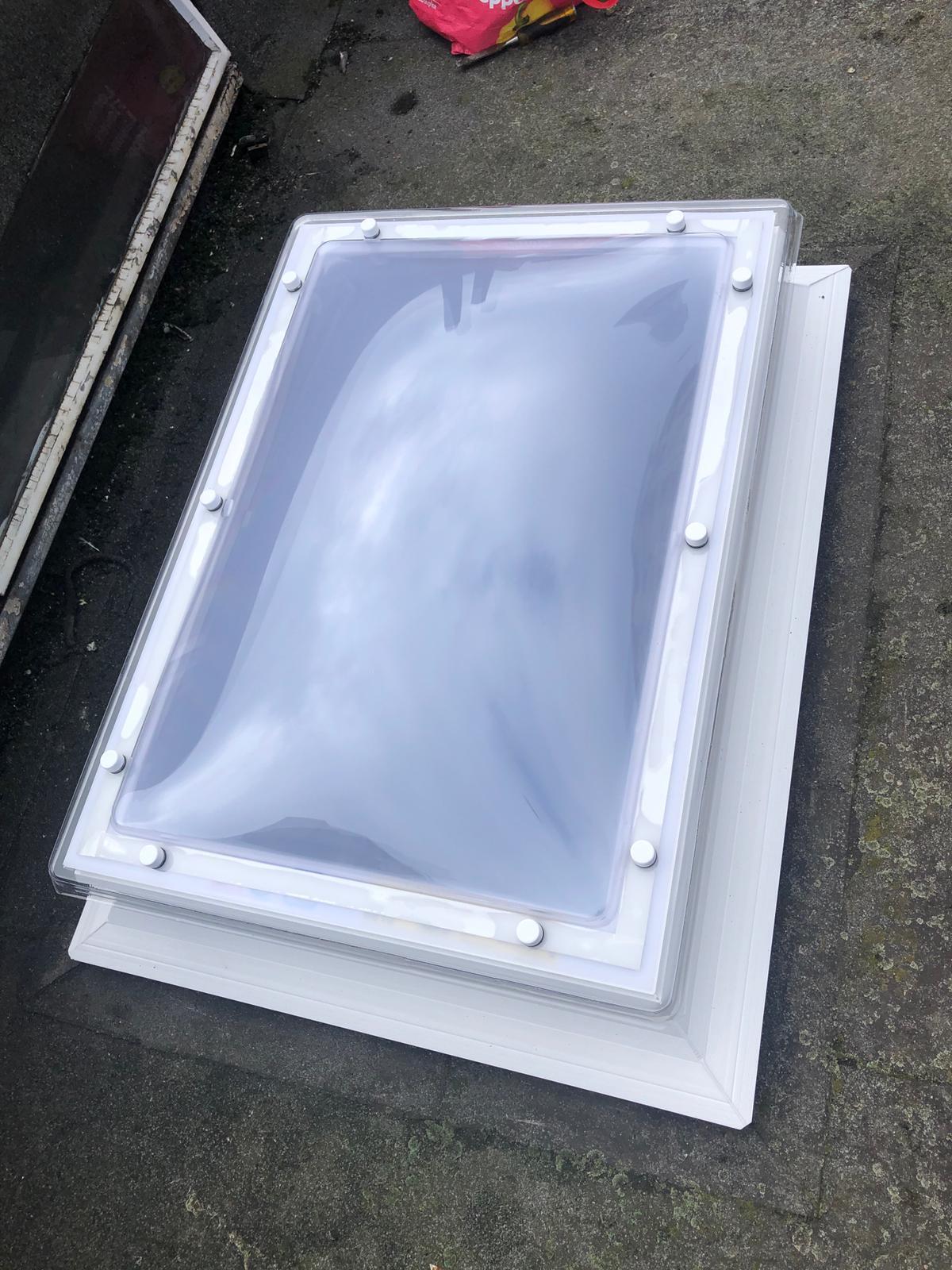 Water Ingress into apartment bathroom via skylight. Skylight was removed and disposed of. The surrounding opening was cleaned and checked for any additional points of ingress. New skylight installed and sealed.
